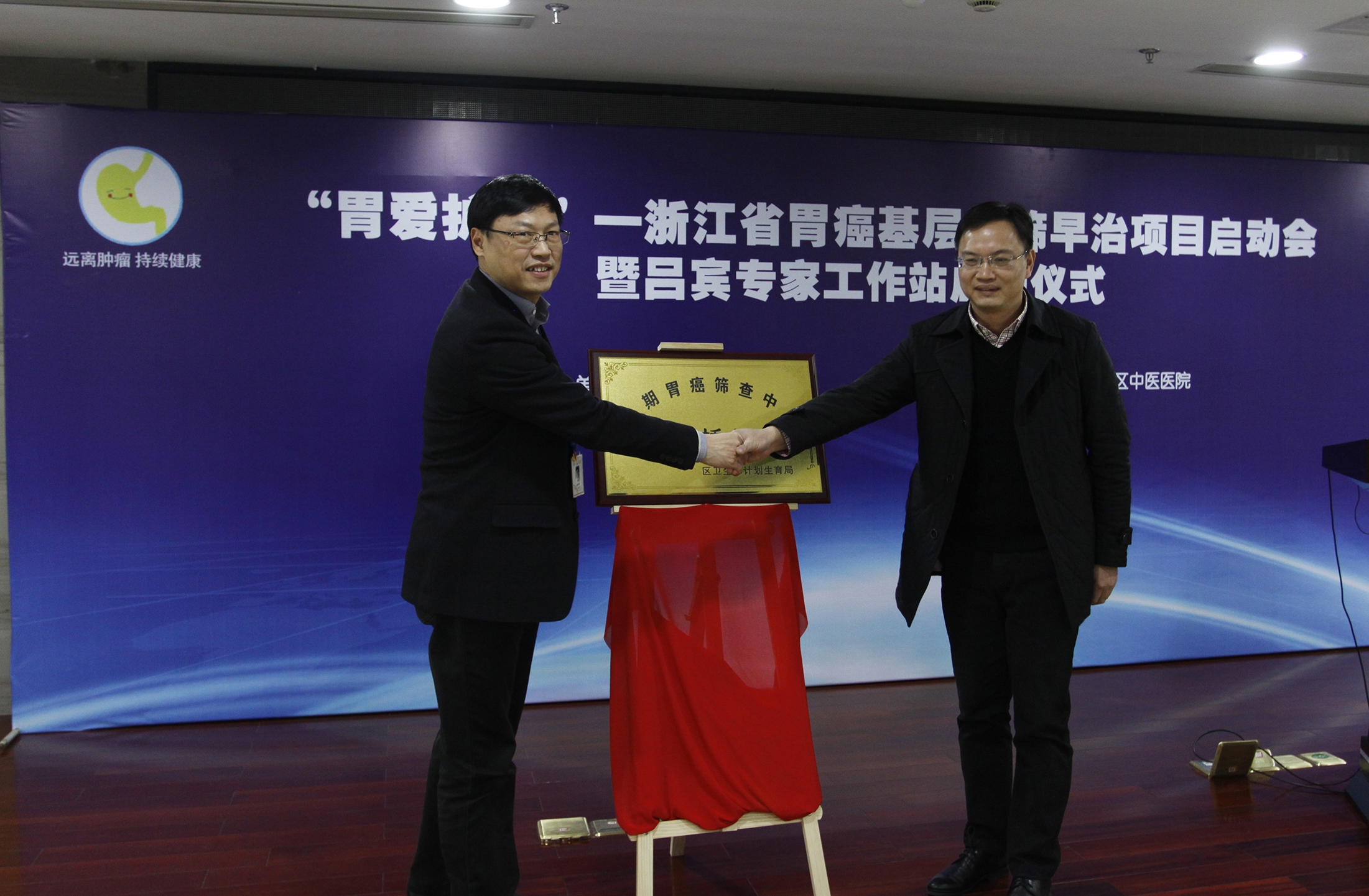 近日,浙江省胃癌基层早筛早治项目(柯桥站)举行启动仪式,同时柯桥区“早期胃癌筛查中心”在我院正式挂牌成立。柯桥区卫计局阮伟良副局长、浙江省中医院吕宾教授及我区各镇(街道)医疗单位主要负责人出席了启动仪式。